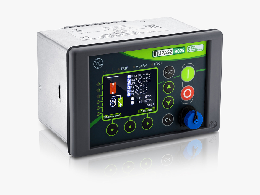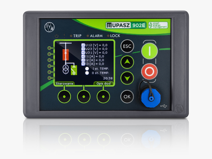 The compact MUPASZ 902E Bay Controller features a small size and a rich set of automation and protection functions. It works with both traditional current and voltage transformers and modern low-power current transformers like CR and CRR types and UR voltage transformers. It is also available in a version dedicated to measuring direct voltage in 400V AC networks.